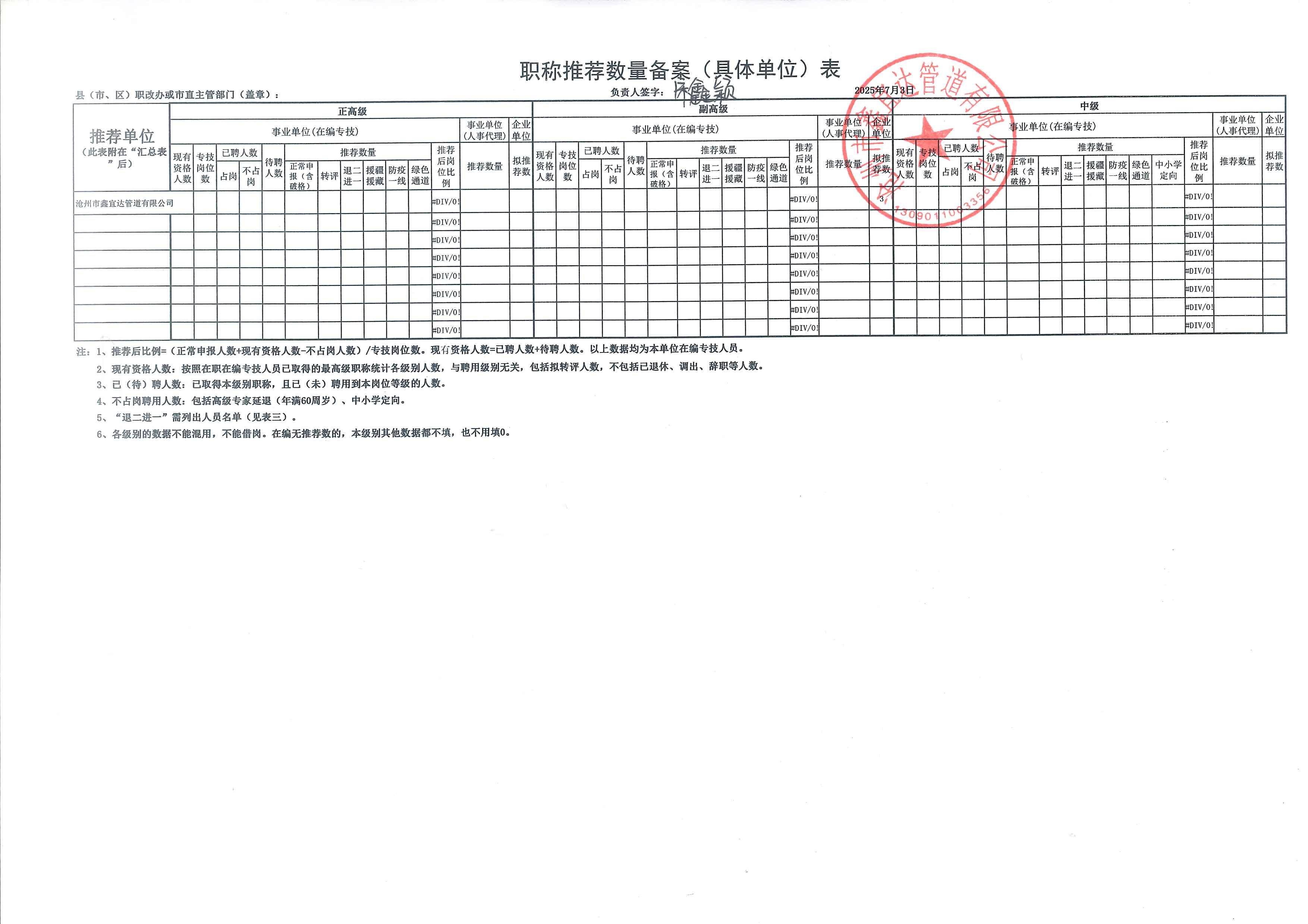 In order to do a good job in our company's 2025 professional title application and ensure that the evaluation work is open, fair, just and orderly, in accordance with the relevant notices and regulations of professional title evaluation in Hebei Province, the "Number of Recommended Professional Titles Filing (Summary+Specific Units) Table for 2025" is now publicly announced for five working days from July 6, 2025. If you have any objections, please report them by phone or email within the public notice period. Phone: 0317-3096030, email: xydzbb@126.com .